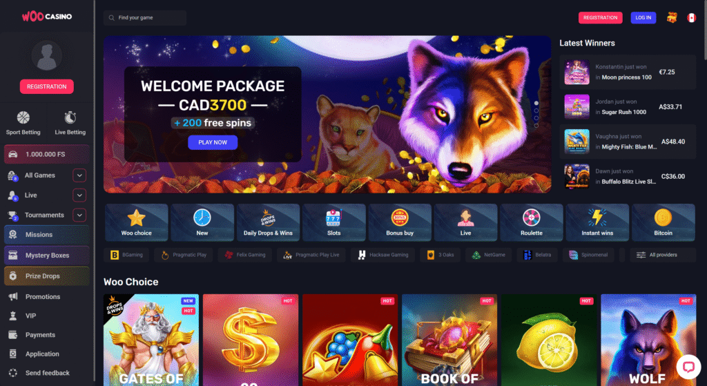 WooCasino offers a strong lineup of popular titles that resonate with Canadian players. Highlights include Book of Dead by Play’n GO, Starburst and Dead or Alive 2 by NetEnt, Gates of Olympus from Pragmatic Play, and Bonanza by Big Time Gaming.